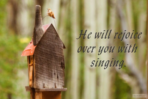 Our home is surrounded by trees, and in the spring and summer, I have beautiful shade gardens full of birds. On days when my heart is sad, and sometimes when it is bursting with joy, I take my guitar outside and do what I love to do most, sing. Sometimes when I sing, little birds come and sing near me, on branches right above me! I’ve wondered, is that little bird bringing the voice of the Lord to sing over me? I don’t really have a scriptural answer for that. We are told in Psalms 66:4, “All the earth worships You and sings praises to You. They sing praise to Your name.” Wow! ALL the earth is singing praise to God! But does he use those little creatures to bless us straight from his throne? I think he does. He sent the ravens to feed Elijah. I think it is entirely possible that he sends the birds to rejoice over us with his song. What burdens are you carrying today, friend? Let God rejoice over you with singing. Listen for his voice telling you how much he loves you. Be at peace, knowing that Jesus has overcome this world with all of its hardships and trials, and your Father, the Mighty Warrior who literally slays the dragon, sings over you with rejoicing. I would love to hear from you about what you would like prayer for, or how you know in your heart when the Lord sings over you. Feel free to leave your comments below!
